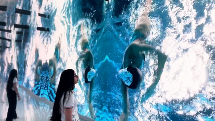 Pour cette résidence prestigieuse, nous avons développé l’expérience immersive « Water ». Dans une boîte miroir, notre œuvre démultiplie les images des athlètes, offrant un nouveau regard sur les cadrages traditionnels. En jouant sur la tension, la concentration et la diversité des disciplines, nous créons un espace où l'art et le sport se rencontrent, célébrant ainsi l'esprit olympique de manière inédite.